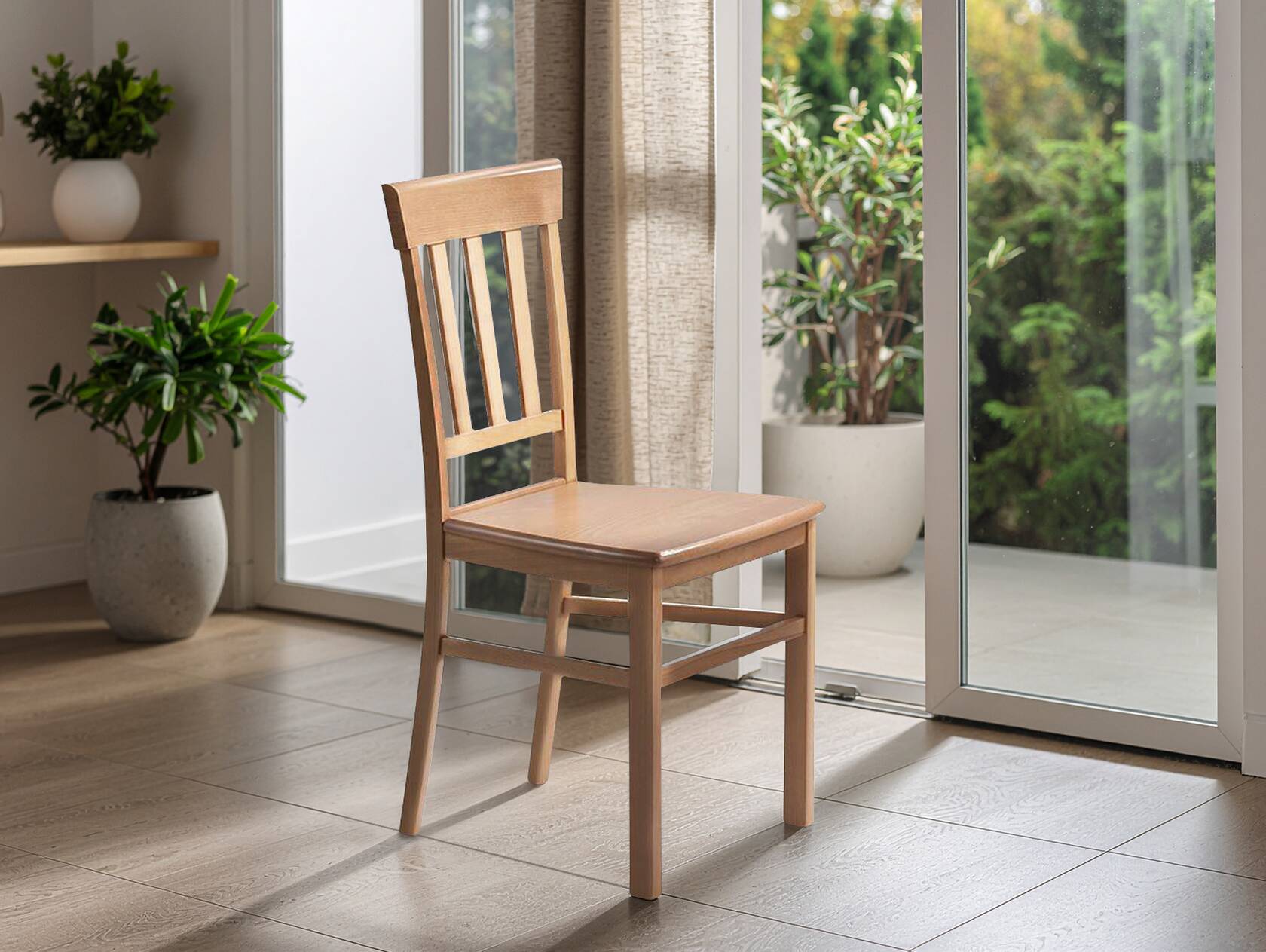 Der riesen Vorteil von diesem Artikel ist die hohe Belastbarkeit des Stuhles. Besonders Sitz und Lehne sind sehr stabil, so hält er ein Gewicht von bis zu 150 Kg aus. Dies kann gewährleistet werden, da das vorliegende Produkt aus Massivholz gefertigt wurde. Genauer gesagt, ist hier vorliegende Material ist massive Buche und auch die Farbe ist dementsprechend. Zudem ist die Oberfläche lackiert. Ein europäischer Anbieter verspricht eine sehr hochwertige Qualität. Außerdem haben Sie eine zweijährige Qualität.
