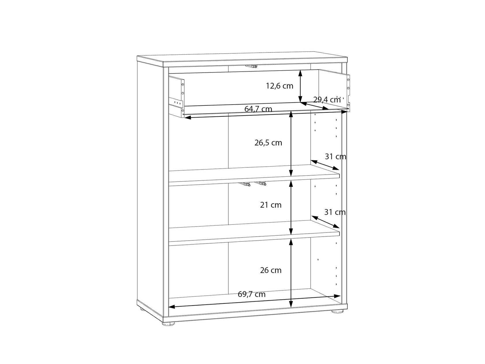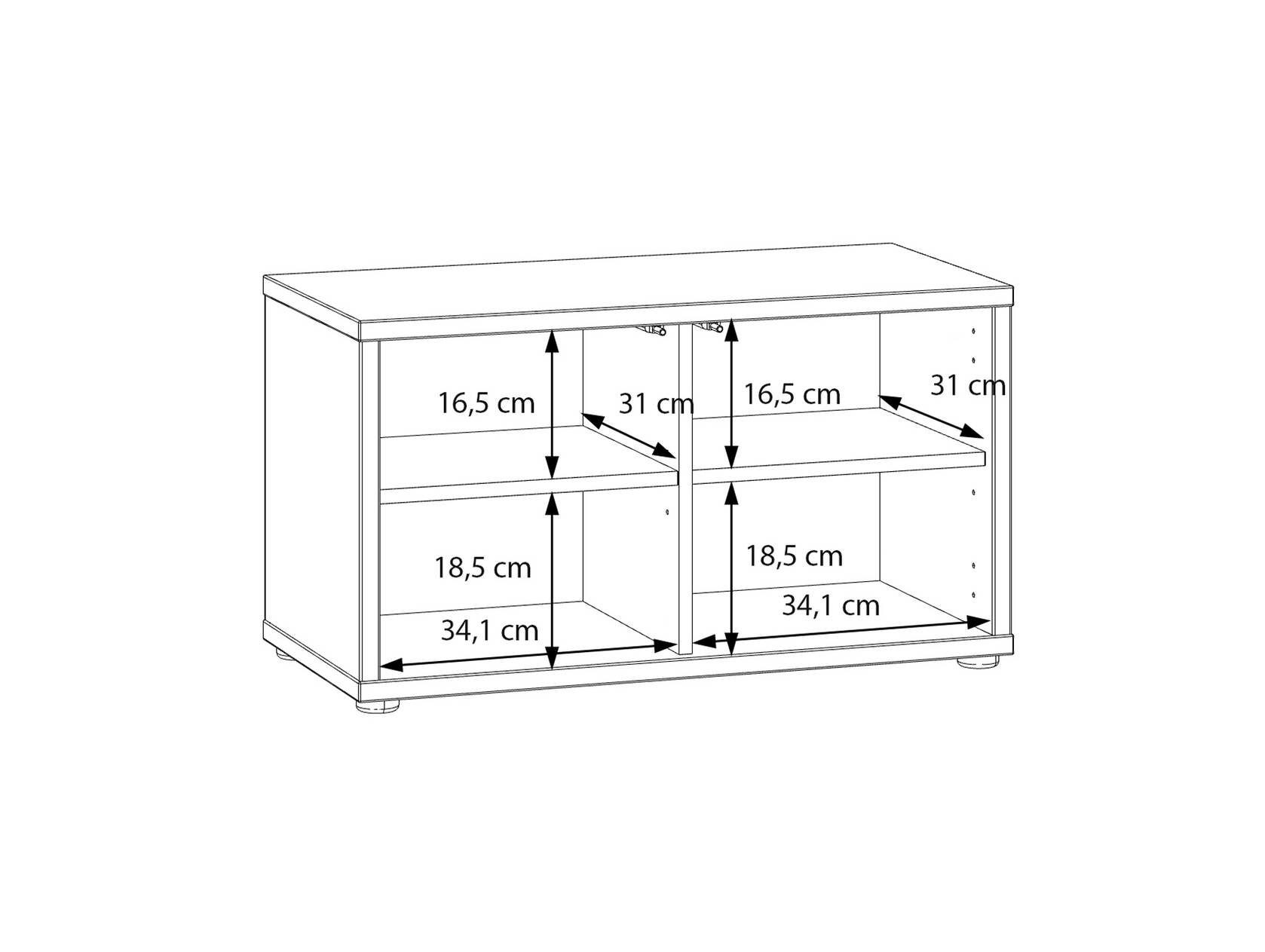 2 Türen, dahinter je 1 Einlegeboden