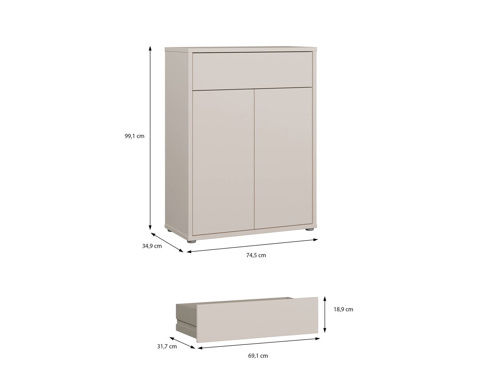 | Schuhschrank: | Breite: 74.5 cm, Höhe: 99.1 cm, Tiefe: 34.9 cm |