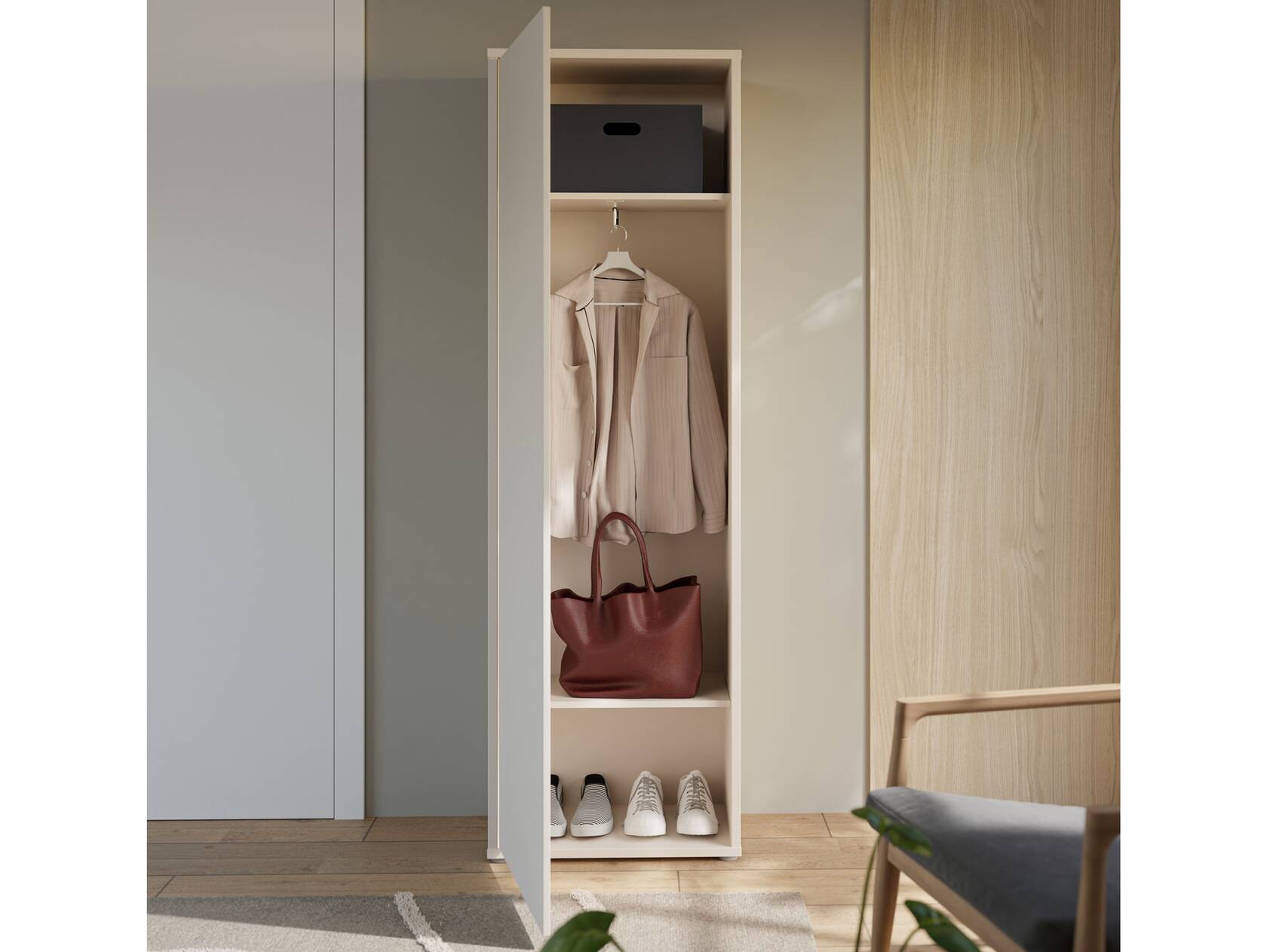 1 Tür, dahinter 2 Boden und 1 Kleiderstange