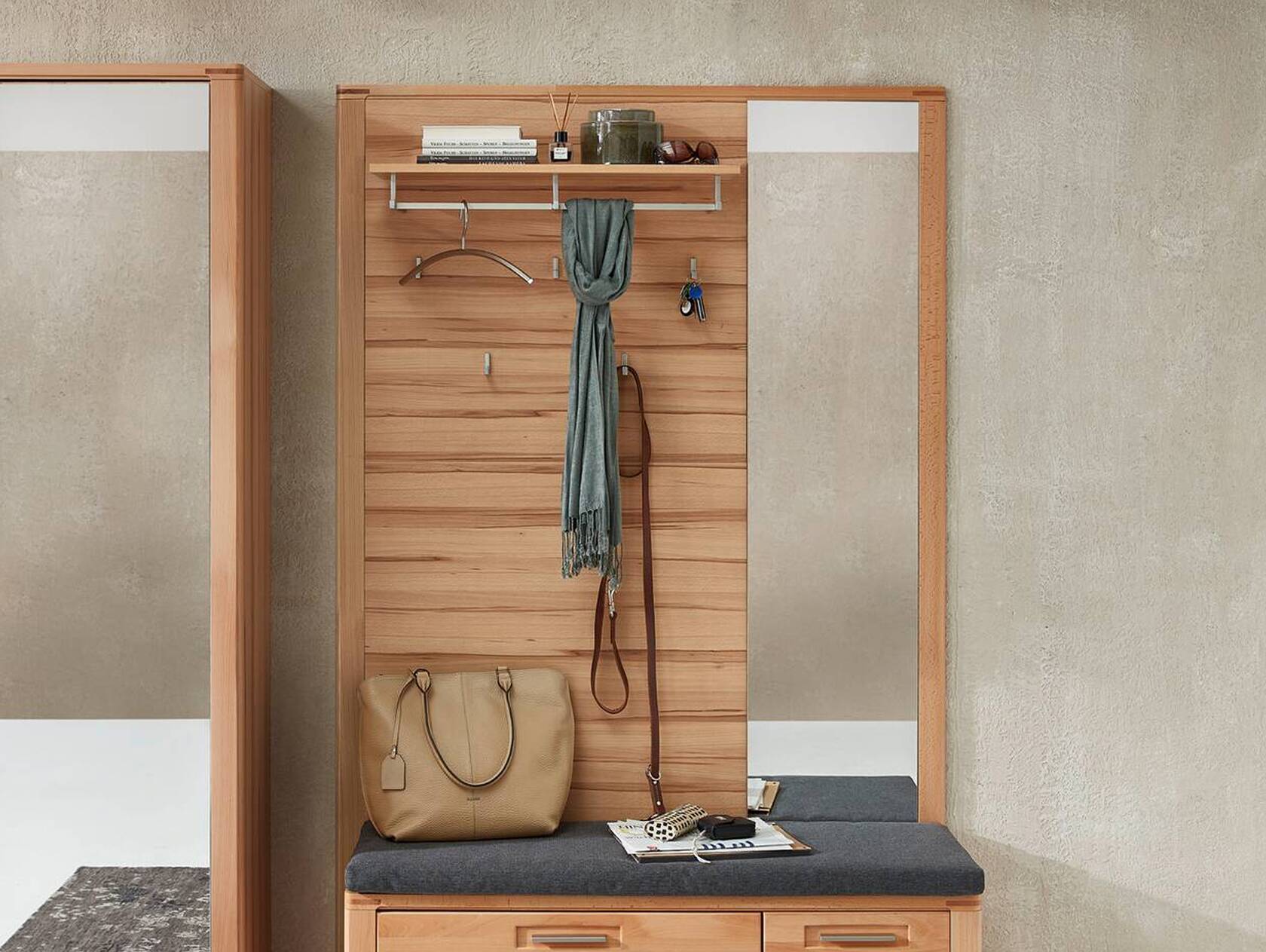 NESTOR ONE Garderobenpaneel, Material Teilmassiv, Kernbuche lackiert