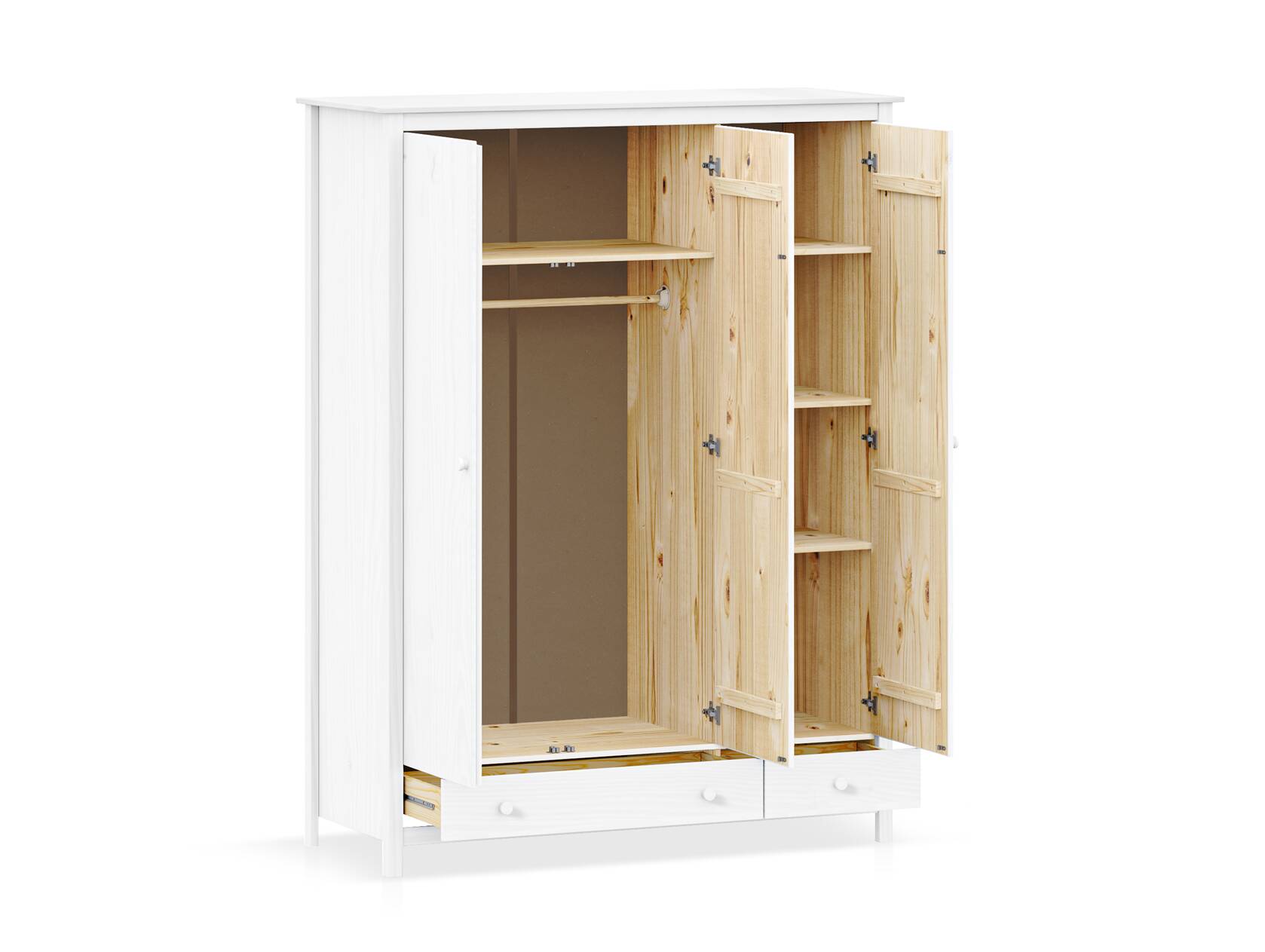 Erleben Sie zeitlose Eleganz und Qualität mit dem TOBINO Kleiderschrank 3trg aus Massivholz, Kiefer. Dieser Schrank ist in drei beeindruckenden Ausführungen erhältlich: Natur lackiert, Gewachst oder im angesagten White Wash, wobei die Maserung durchscheint.