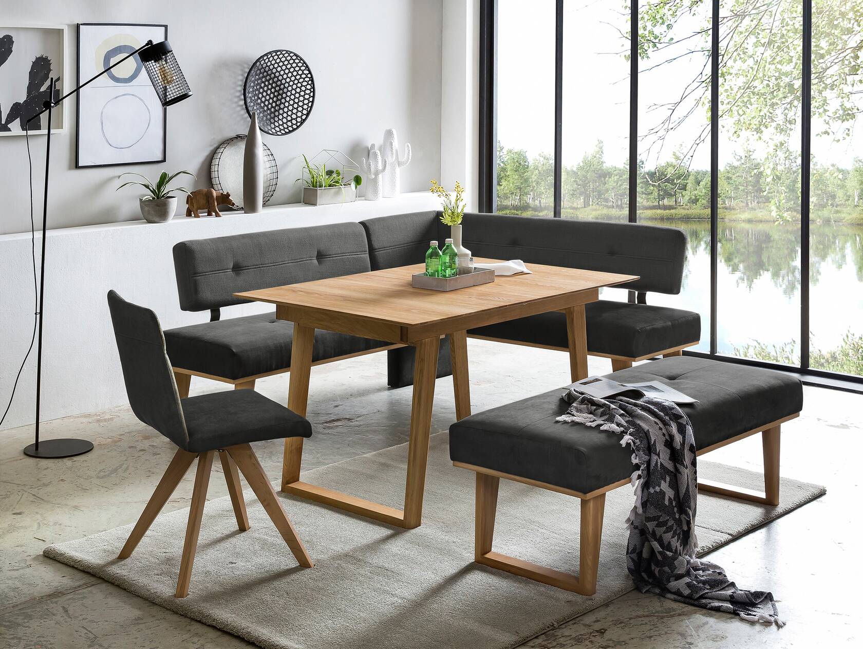 COLMI Eckbank, Material Massivholz/Bezug Stoff Eiche | 224 x 167 cm | dunkelgrau