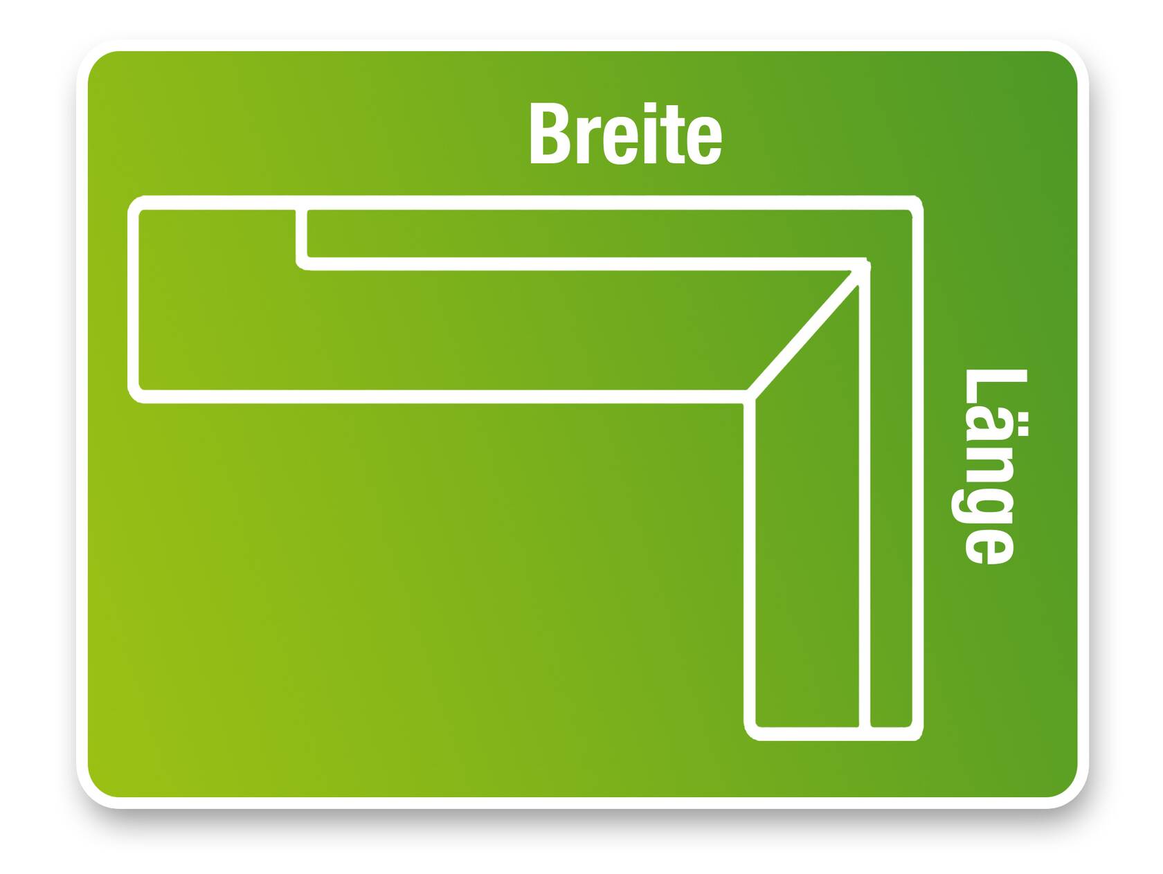 Breite = Linke Seite: 224 cm / Länge = Rechte Seite: 167 cm