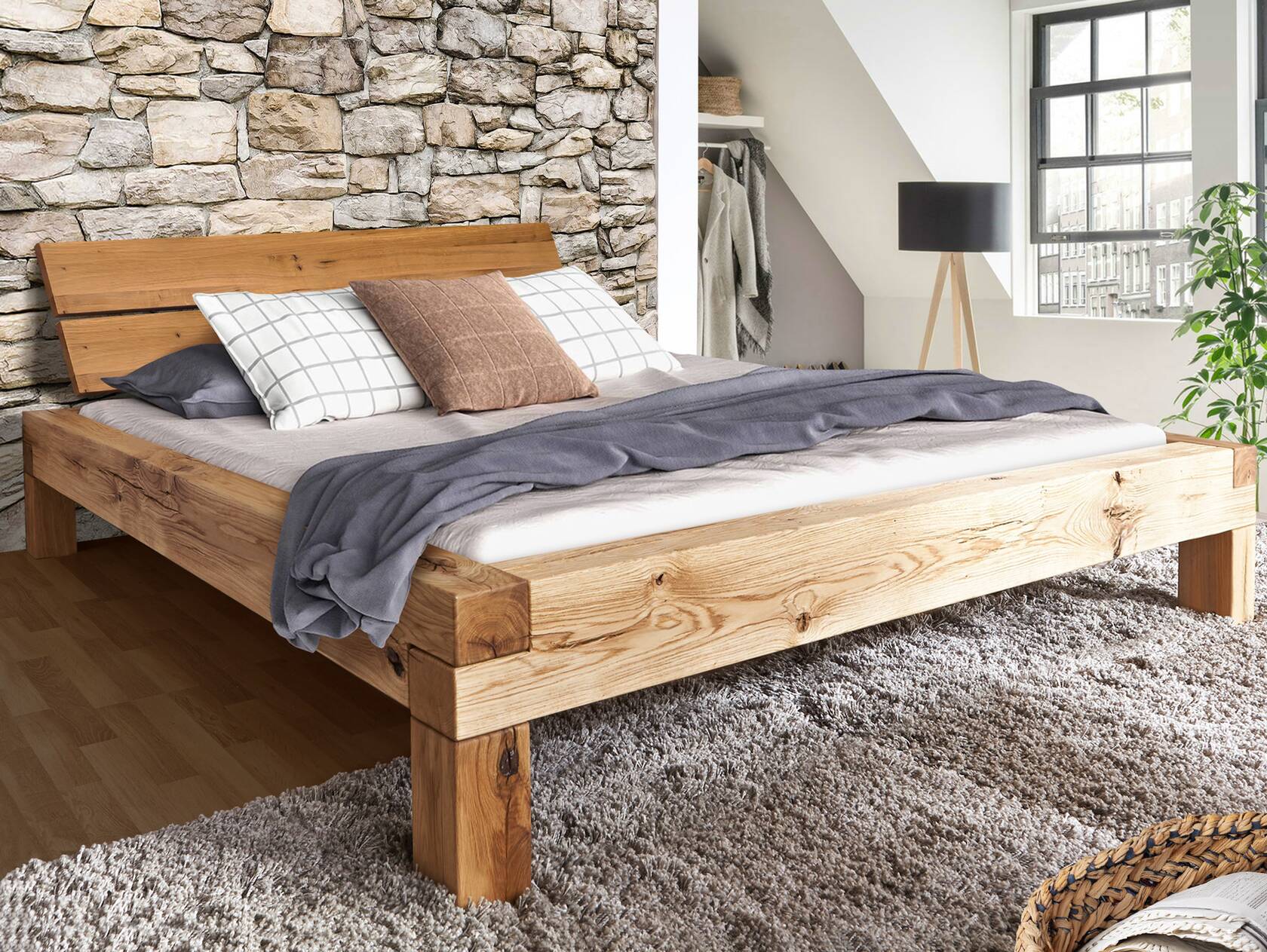 Erleben Sie erholsame Nächte in einem Bett, das Naturverbundenheit und zeitloses Design perfekt vereint - das LIAS Balkenbett mit Kopfteil. Entdecken Sie auch die vielfältigen Ausführungen in unserem moebel-eins Shop.