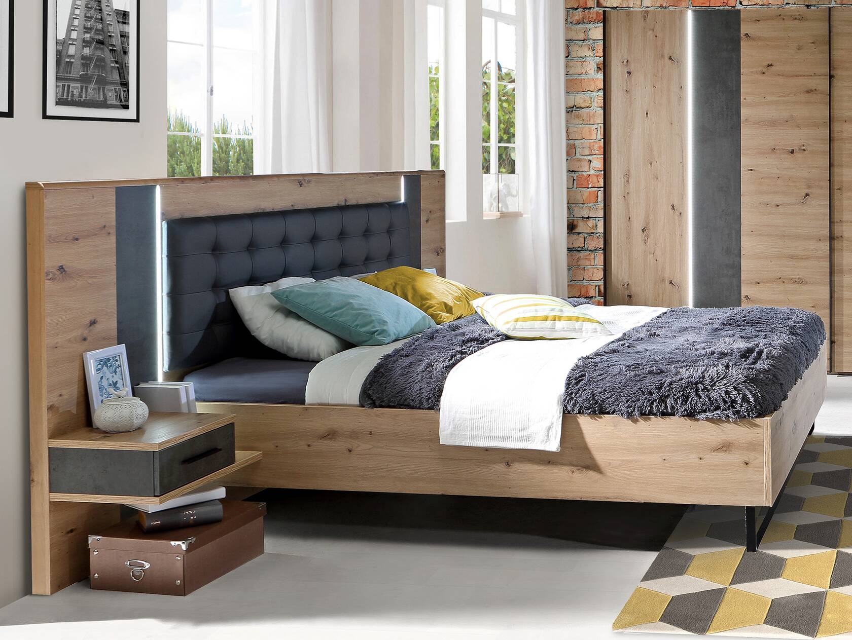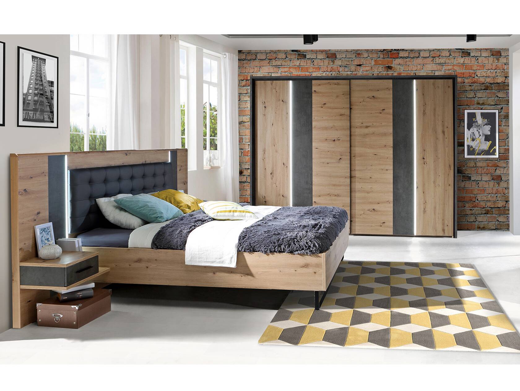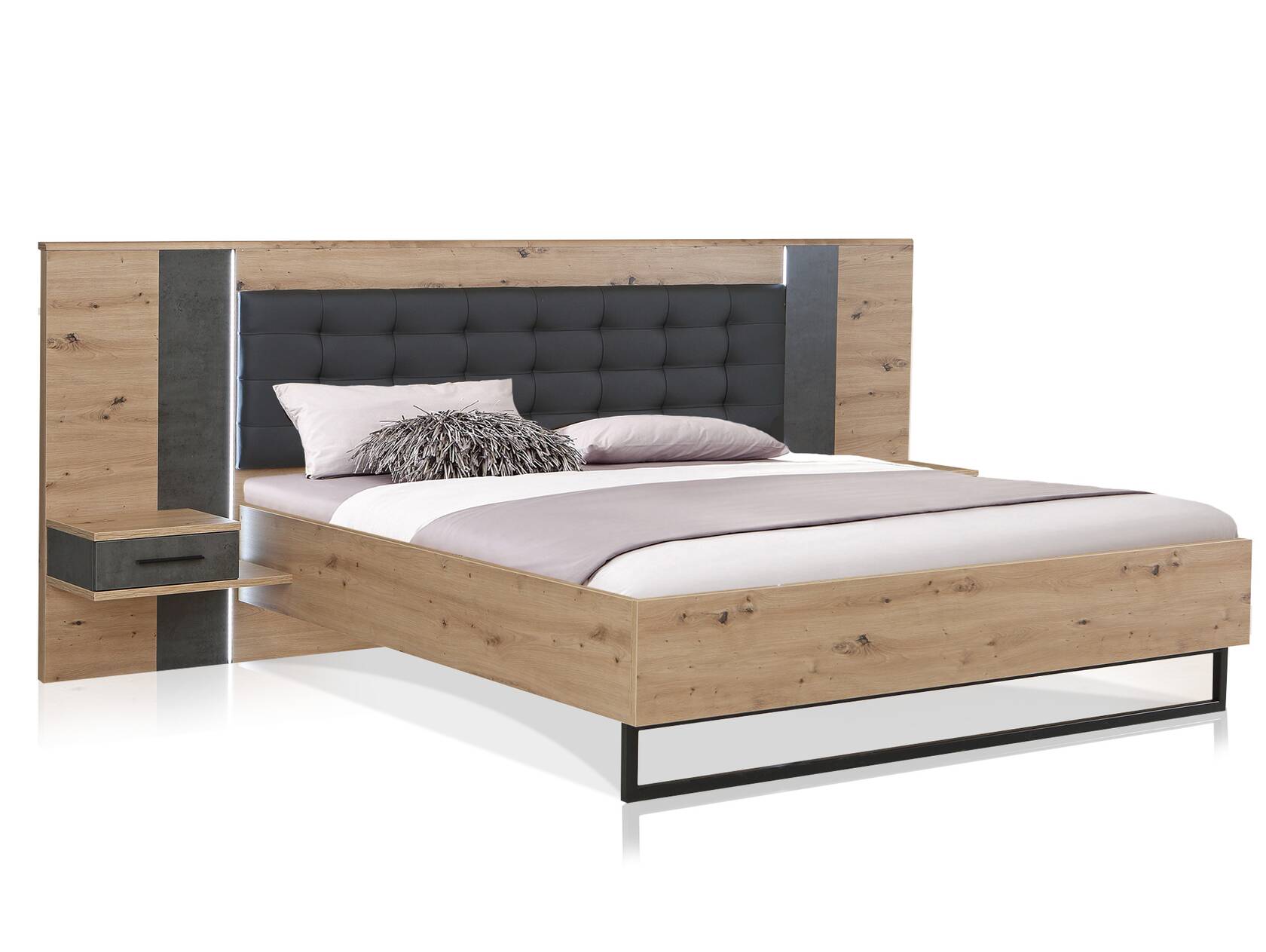 Die FILENA Bettanlage mit Polsterkopfteil bietet Ihnen ein modernes und stilvolles Schlafzimmerensemble. Hergestellt aus hochwertiger Dekorspanplatte in Artisan Eiche Nachbildung/Dunkelgrau verleiht es Ihrem Schlafbereich einen zeitgemäßen und ansprechenden Look.