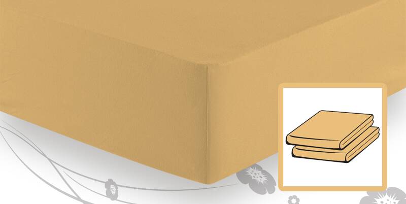 Dieses Spannbetttuch Jersey erhalten Sie in der Größe 90x200 bis 100x200 cm und in fünf verschiedene Farbvarianten in ecru, beige, bahama, schoko und curry.