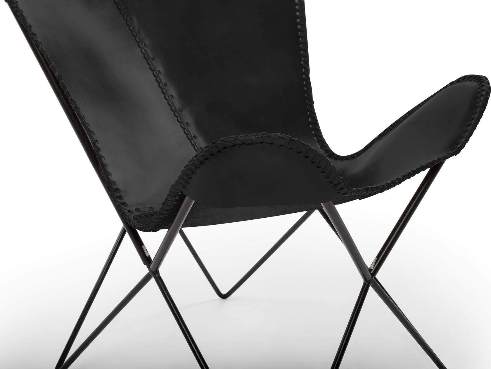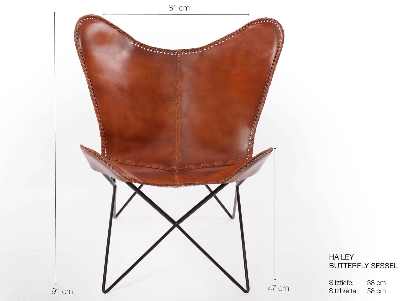 HAILEY Sessel Butterfly, Bezug Echtleder, Gestell Metall schwarz?
