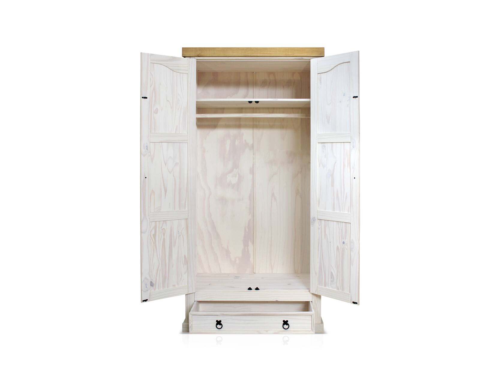 2 Türen, dahinter 1 Ablageboden und 1 Kleiderstange