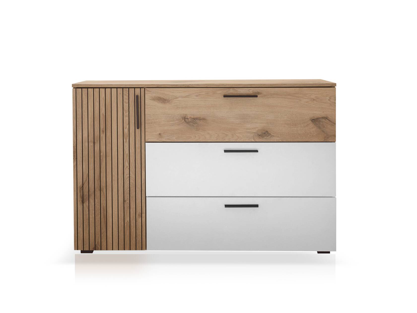 DOMENICO Kommode, Material Dekorspanplatte, weiß/Eiche hell Nachbildung